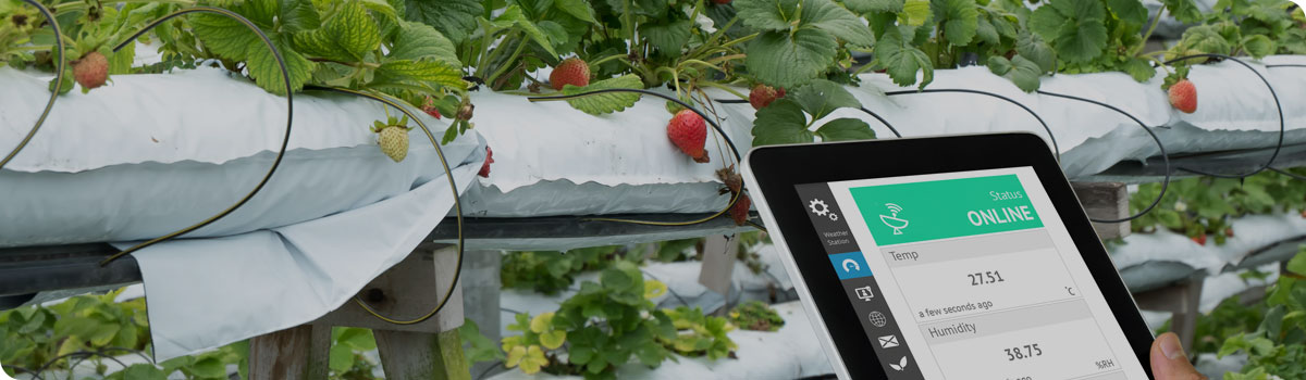 Smart farming management provides a interoperable solution for farming efficiency and security with temperature and humidity control, carbon emissions control, nutrient control, and soil and crop condition monitoring.