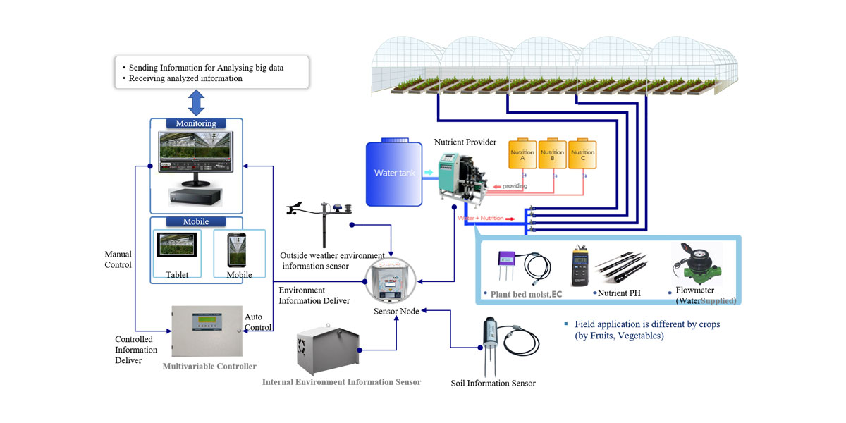 Smart Farm is a model that improves management and control such as convenience, security, and efficiency of crop cultivation by combining existing agricultural land with ICT and management system.